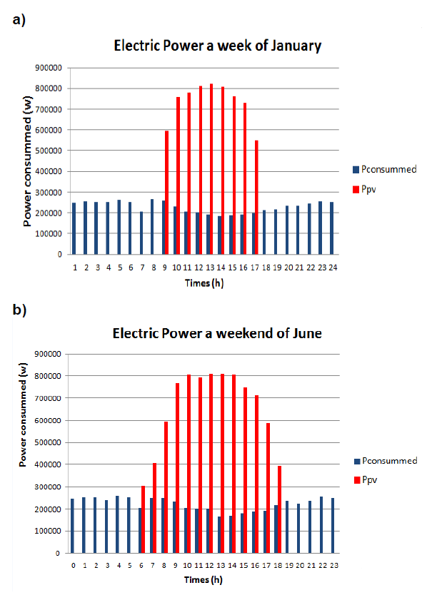 The produced photovoltaic solar energy is not sufficient to meet the entirety of the university’s demand. However, it can cover this demand during the day by reducing nonessential consumption, such as lighting. Additionally, it offers the advantage of being available in case of disruption to the electrical grid, such as a power outage. In the event of a nighttime power outage, the energy stored in batteries can be used to provide minimal lighting for security tasks. Another advantage is that during summer and weekends, photovoltaic production is higher due to the absence of students and academic activities at the university, allowing for the resale of excess production.