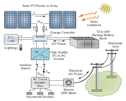 The excrescence power that generated is forward to the utility grid and the consumer acquires compensated for it. Similarly, the consumer has been drawn the electricity from the grid and pacy for the units which used. Fig.1 represents the on-grid solar PV system [12], [3].