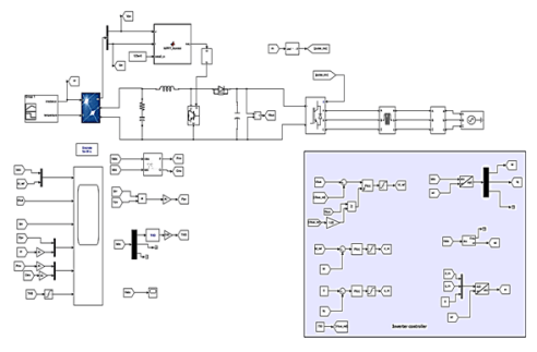 Praveen Kumar and et al., (2021) studied on 100kW PV system connected with grid (on-grid). They incremental conductance algorithm for MPPT controller. Matlab/Simulink were used to model the proposed system. The revised MPPT algorithm was shown to be capable of boosting the dynamic and steady-state functioning of the PV system, as well as tracking the maximum amount of solar light and efficiently supplying maximum power for the PV array [2].