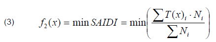 f2(x) – refers to minimization of the SAIDI index, determines the total duration of power outages in minutes that a customer in a given area of the distribution grid can expect (during the year):