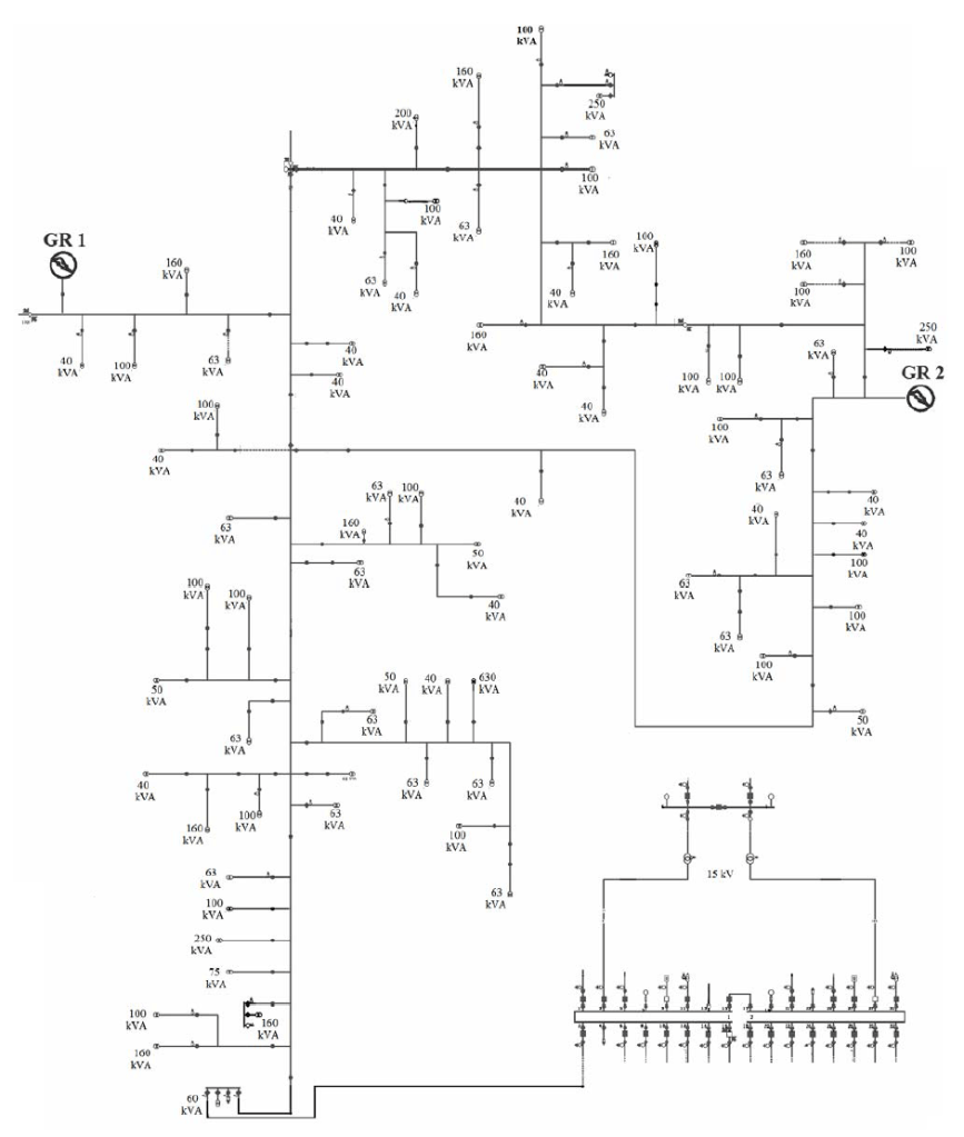 The calculations were carried out for the MV field electrical distribution grid shown in figure 1.