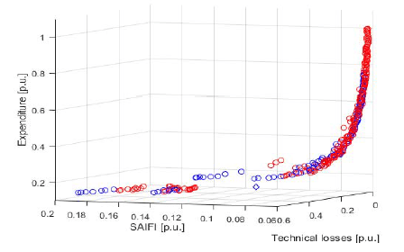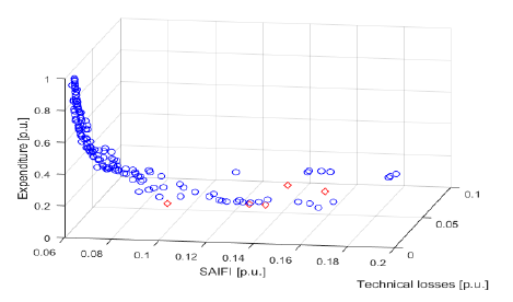 f1(x) – refers to the minimization of the SAIFI index (for the analyzed grid), which is a measure of the number of outages per customer (per year), and does not include outages shorter than 3 minutes: