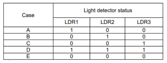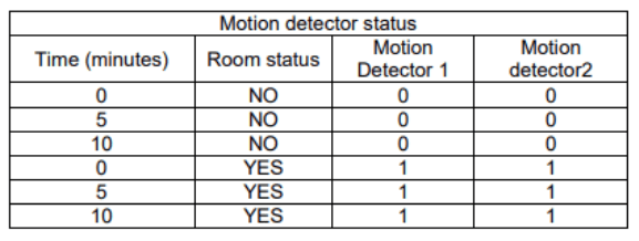 Table 2, shows that both motion detectors can detectors detect accurately in both case; that is, when there were people in the room and when there were anyone in the office room. For the light detection in the office room, five cases were studied. Firstly, bulbs in row 1 were turned on (A). Secondly, bulbs in row 2 were on (B). Third case was when bulbs in row 3 were on (C). Fourth case was when all bulbs in every row were turned on (D), and final case was when all bulbs in every row were off. The results of light detector status are shown in Table 3 and Fig. 8.