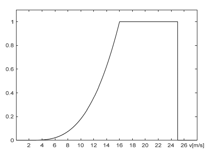 DER sources energy production depends not only on weather conditions, but also on resources characteristics. They are non- linear functions of wind speed for windmills (figure.2) and also for solar modules the dependence of energy production on solar radiation is highly non-linear. Moreover solar panels do not work during the night and windmills do not produce energy when wind speed is lower than their starting point.