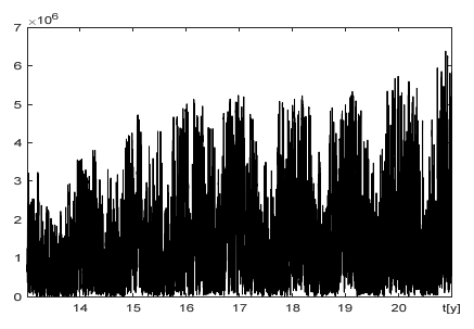 The averaging of energy production by windmills was performed in yearly periods according to the following algorithm: