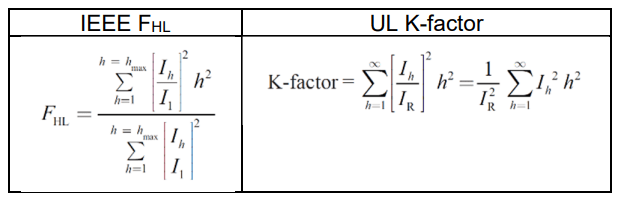 IEEE C57.110-2018 [4] defines harmonic loss factor FHL which is commonly used in HVDC, FACTS, and power applications, while UL1561-defined K-factor is used for distribution transformers connected to electronic equipment. The FHL factor is a function of the harmonic current spectrum and is independent of the relative magnitude. The UL K-factor is dependent on both the magnitude and the distribution of the harmonic current. For a new transformer with harmonic currents specified as per unit of the rated transformer secondary current, the K-factor and FHL factor have the same numerical values. The numerical value of the K-factor equals the numerical value of the harmonic loss factor only when the square root of the sum of the harmonic currents squared equals the rated secondary current of the transformer.