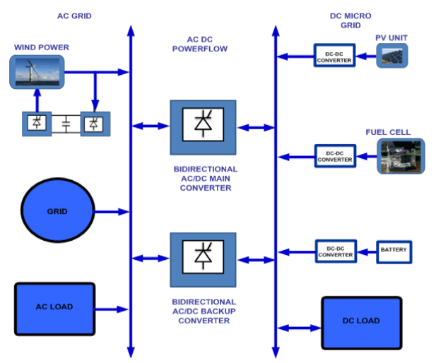 Microgrid can be considered an alternative to the consumption of traditional plants based on fossil fuels to reduce the energy supply deficit. It enables the benefits of efficient and sustainable energy supply, reduced carbon emissions, and delayed expansion of distribution infrastructure. A Microgrid has the ability to operate as a single system, and if there is a problem with the grid, it can be disconnected or independent from the main power system and reconnected to the grid when the problem is resolved [4]. One-off the core intention for the progress of the MG structure is the incursion of RE sources. Thus, the basic characteristic parts of MG have Dispersed Energy Resources (DER), consumers, and regulators, as depicted in the Fig.1. below. However, integrating renewable energy into the main grid becomes an exigent task due to the intermittency of energy sources nature and so adaptive control strategies are required for power converter control [5] as described in the following sections to improve Power Quality (PQ) in a microgrid.