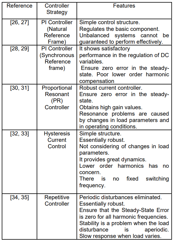 Hence, power quality problems get remunerated in control strategies applied to the interfacing inverter as shown in the Table 2. below.