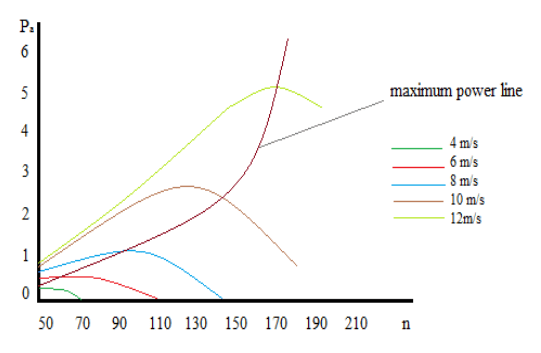 Power control in wind installations is very important. This can be explained by the peculiarity of the aerodynamic characteristics of the wind wheel. In figure 1 shows the dependence of the generated power on the rotation speed of the wind wheel for different wind speeds. From this graph it can be seen that each wind speed corresponds to a certain rotation frequency. In this case, the power of the wind wheel is maximized [1-5].
