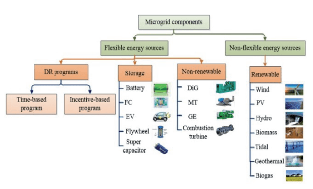 The microgrid concept is introduced to have a selfsustained system consisting of distributed energy resources that can also operate in an islanded mode during grid failures. Thus, the energy management system (EMS) may serve a variety of purpose depending upon the application of BESS during the grid connected and standalone mode of operation such as power smoothing, power quality improvement, matching supply and demand, supplying energy to grid if bid power is greater than generation etc. Over the last decade, EMS have been researched considering various perspectives and have attracted the attention of researchers. EMSs have been classified into four categories as shown in Fig.1 based on the kind of the reserve system being used, including non-renewable, ESS, demand-side management (DSM) and hybrid systems.