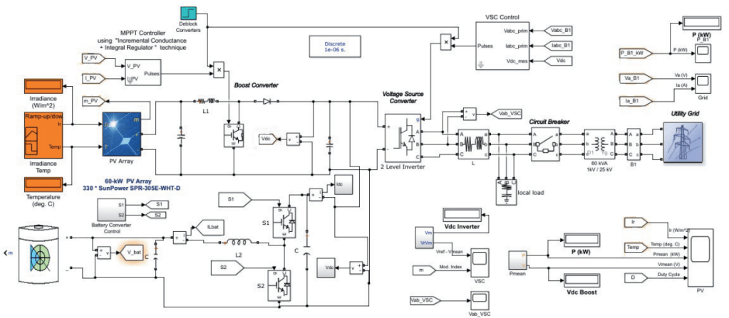 Renewable energy growth and development has now become a basic requirement for growth of a country [1], [2], [3]. For a better environment, renewable energy is seen as a replacement for conventional fossil fuel based generation. Although, there has been a lot of work in the field of renewable energy however, there are still various reasons because of which renewable energy still shares a very small amount of energy with respect to the total energy generation [4]. The renewable energy sources, such as wind, solar, biomass, ocean etc may work in standalone as well as grid connected mode. The major issue with these sources is the intermittent nature of these sources [5], [6]. They are basically dependent upon environmental conditions such as availability of sun, wind and temperature, pressure etc. When there is a cloudy condition the sun is not available and solar energy generation may go down, sometimes even to zero. The surety of power to consumers is one of the basic requirements for energy system operators [7]. To deal with the intermittency nature of these renewable sources, battery energy storage systems (BESS) are used in various power stations [8], [9], [10], [11]. However, BESS has its own advantages and disadvantages. BESS may help in providing the power to consumers during intermittency; however it is sometimes not capable of transients arising during the switching conditions [12], [13], [14], [15]. And BESS are also very expensive and have high installation costs [16], [17]. In grid connected mode, BESS may not be needed as whatever the deficit power is, it may be fed by the grid.