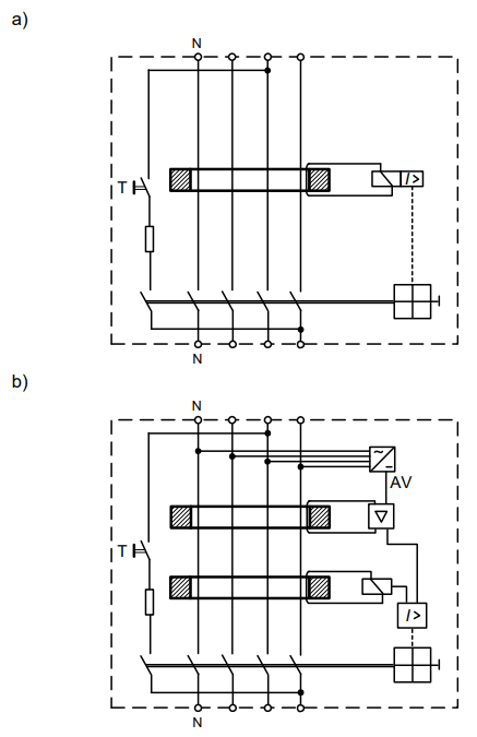 Due to the fact that the RDC-DDs are required to detect a high-value DC component (more than 6 mA), they need an auxiliary voltage to function properly. Fig. 3 shows a comparison of internal diagrams of A-type RCD vs. RDCDD.