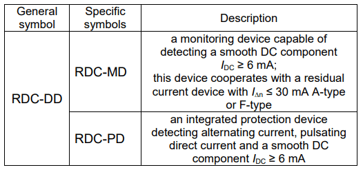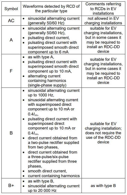 Table 3. Residual current protection devices intended for installations using mode 3 charging (RDC-DDs) according to [14]