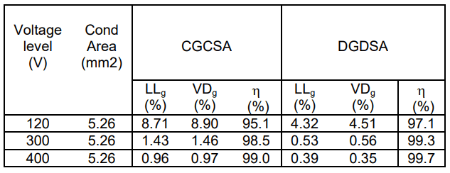 The proposed architecture applies Newton Raphson Analysis to evaluate its power efficiency, voltage level on a particular conductor. System performance is analyzed on 120V, 300V and 400V voltage distribution networks. The length of the conductor between neighboring houses is assumed to be 20m, while the length of the conductor between clusters is 200m. The cross-sectional area for the conductor i.e. 5.26mm2 is evaluated. For the DGDSA scenario, %LLg, %ɳg and %VD are calculated using (12) (14) (15).