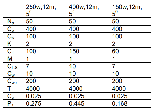 Table 5. Parameters needed to calculate initial cost and the annual electricity cost.