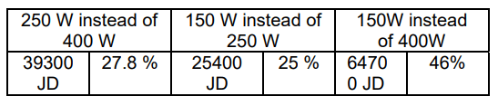 Cle = M Pl T Cc = 1(0.275) (4000) (0.052) = 55 JD/luminaire