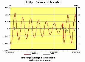 Severe power quality problems damaged X-ray equipment, costing $100,000 in one instance. The source of the problem was the switch over from utility to generator power, during regular testing and emergency situations. Figure 1 (below) identified the cause of the problem, an out-of-phase transfer, captured by On Power with a Dranetz 658 Analyzer.