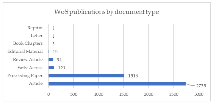 Although the beginning of the publication period in the WoS and Scopus databases was recorded only in 2015, the increase in number of publications was rapid. In 2021, it exceeded one thousand papers.