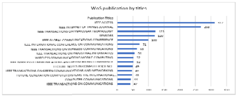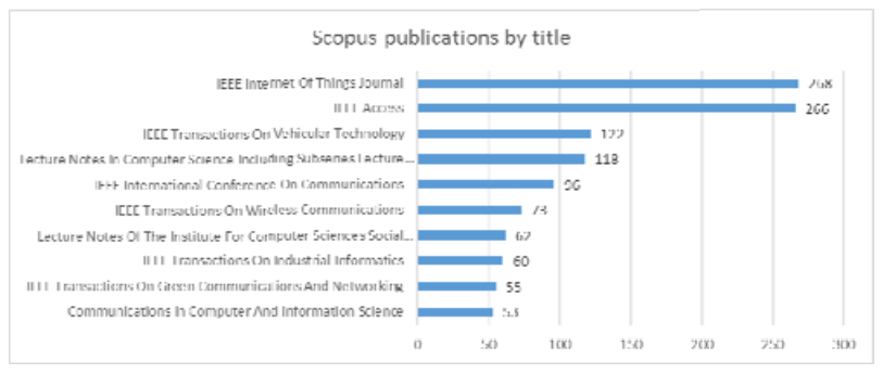 The most publications occurred in IEEE Society journals such as “IEEE Access,” “IEEE Internet of Things” journal, “IEEE transactions on Vehicular technology,” “IEEE Transactions in Wireless Communications”, and others. Among other publishing houses, the two MDPI journals were popular, namely “Sensors” and “Electronics” (see Fig. 9,10). Among others, Elsevier, Hindawi and Wiley publishing houses were popular. Lecture notes in Computer science by Springer were the popular choice for conference papers.
