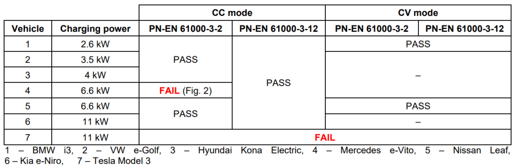 Table 2. Assessment of current harmonics emission of individual vehicles against PN-EN 61000-3-2 and PN-EN 61000-3-12