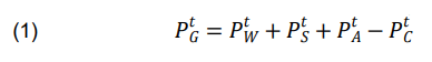 Here: PG-grid production, PW-wind power generation, PS-solar power generation, PA-auxiliary production. The PC-parameter is used to indicate consumption. There are various methods for modeling wind energy, which is a variable production method. PW can be obtained using the Weibull probability distribution.
