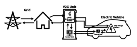 Today, the increase in the number of electric vehicles creates a real opportunity for grid balancing. This opportunity can be used to help balance the electrical system and manage local ecosystems by being managed with Vehicle-to-Grid (V2G) solutions. Vehicle to Grid is a system in which plug-in electric vehicles (EV) are connected to the energy grid by transmitting electricity back to the grid or by reducing the charging rates to realize demand-side services. The basic concept of vehicle-to grid demonstrated in the Figure 1.