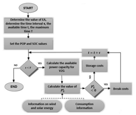 In the computational method, forecasting was used in the available energy capacity method to determine V2G production. This method first determines the probability of participation having the same value for all vehicles. If a different probability value is used for each vehicle, the computational complexity increases dramatically. Using the total participation probability, the share distribution can be simplified to the binomial distribution. Finally, the available energy capacity is calculated by grouping the vehicles into different groups. The SOC features of the EA are also taken into account in order to make a better assessment of the calculation method [5, 6, 7, 8].