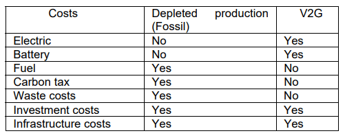 Table 4. Comparison of the cost of fossil fuel production with V2G