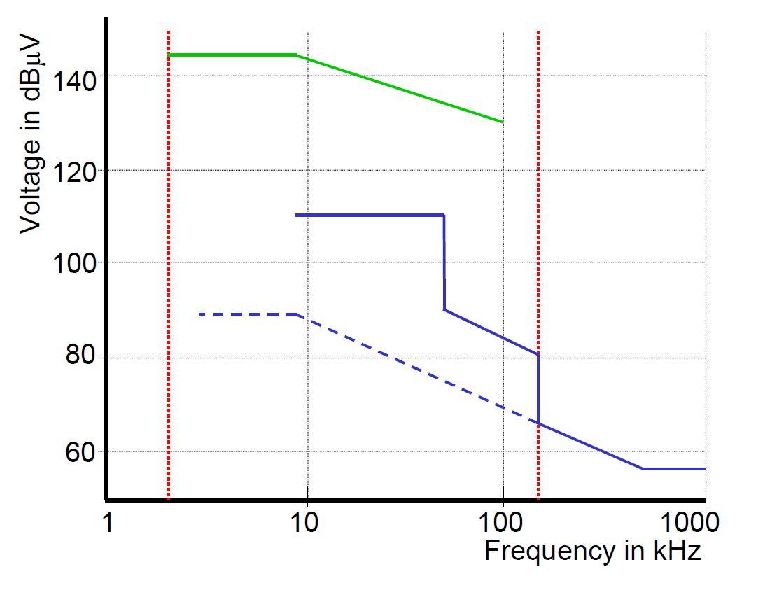 Previous Image Next Image figure-5.1.-emission-limits-for-broadband-signals-according-to-cispr-15-blue-solid-line-and-en-50065-dashed-line.-the-voltage-characteristics-for-narrowband-signals-green-solid-line-are-