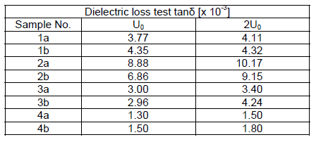 • tanδ dielectric loss measurements for all test specimens;