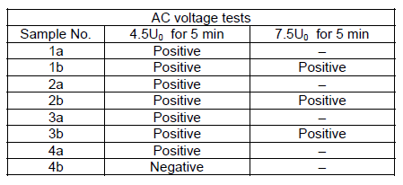 Table 3. AC voltage tests results for 4.5U0 and 7.5U0 voltage applied