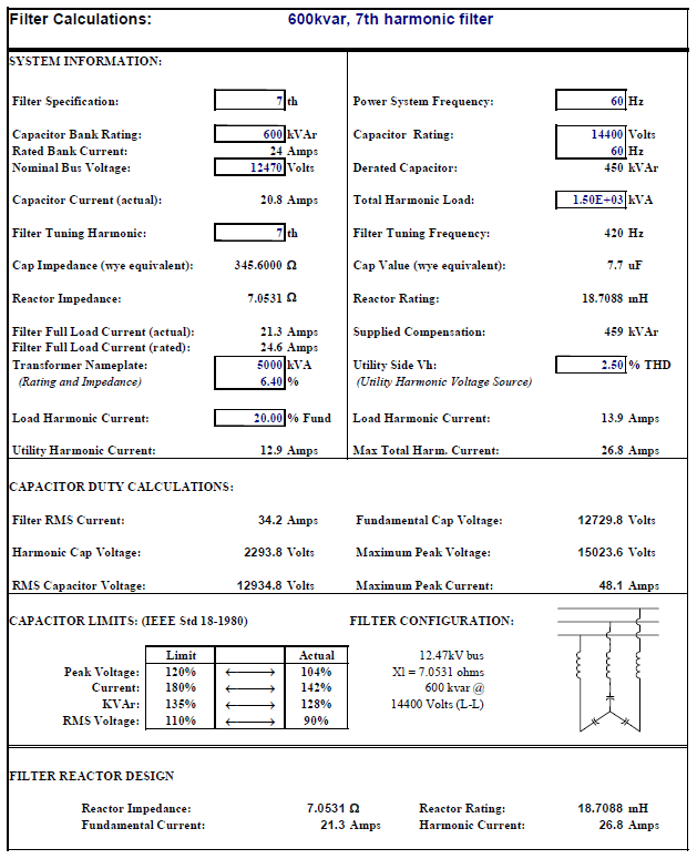 Table 3 – Filter Design Spreadsheet for 600 kvar 7th Harmonic Filter