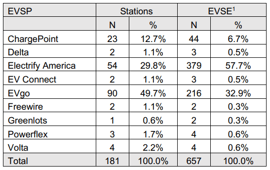 Table 1. Evaluated open public DCFC EV charging stations and EVSEs by EV Service Provider