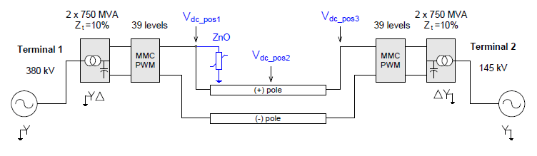 The presence of overvoltages in DC systems using VSC-HVDC can be due to various causes, namely, faults in the system, loss of the inverter terminal, loss of load, etc. The reconnection of the rectifier, once it has been blocked, e.g., due to a fault, can also be responsible for the presence of overvoltages [1].