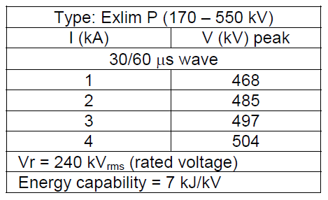 Use of Surge Arresters Zinc Oxide (ZnO) arresters are commonly used for the protection against overvoltages in AC and DC systems. So, a ZnO arrester was placed at point Vdc_pos1 (sound pole), as depicted in Fig. 11. The rated voltage of the selected surge arrester is 240 kV (rms). Its V-I curve is presented in the Appendix. Additionally, the maximum energy that this particular arrester can absorb is 7 kJ/kV.