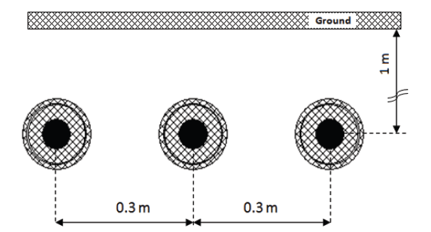 The HV cable that interconnects the GIS substation with the overhead transmission line has a length equal to 5 km, whereas the cable between GIS substation and power transformer is 0.2 km long. Both cables were modeled as frequency dependent elements with Line/Cable Constants subroutine [1-2]. A flat formation with 0.3 m spacing between each cable and 1 m vertical depth position were used. Its arrangement and basic parameters are presented in Figure 2 and Table 1.