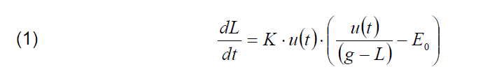 where: K – constant [m2/([kV]2· s)], E0 – average gradient voltage [kV/m], u(t) – voltage across the gap [kV], g – gap length [m], L – leader length [m].